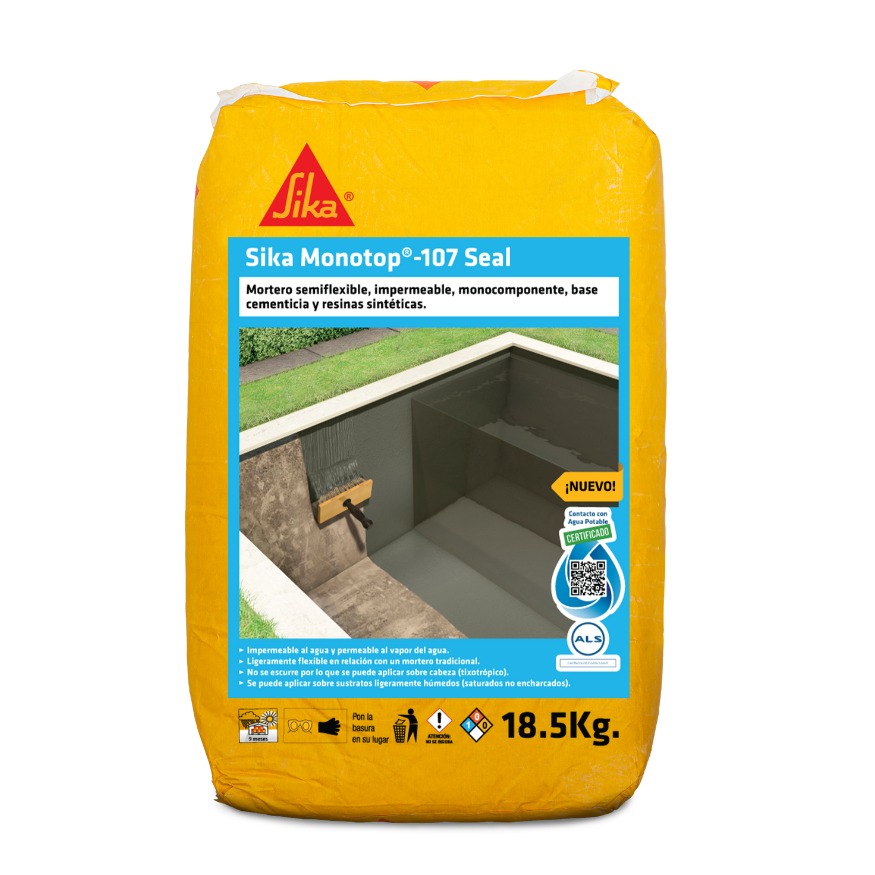 Base cemento, monocomponente, semiflexible, para revestimientos impermeables en el interior de estructuras hidráulicas, reforzado con polímeros modificados y resinas sintéticas.